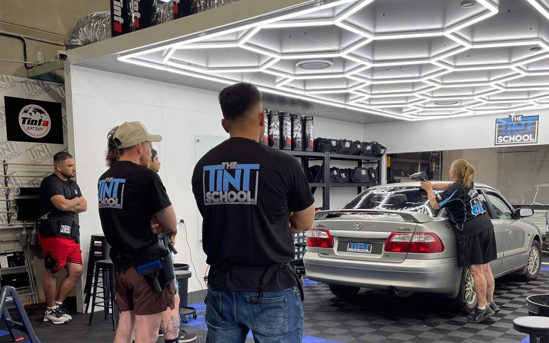 The training curriculum at The Tint School encompasses automotive window tinting, paint protection film (PPF), ceramic coatings, and vehicle wraps. The entry-level program is designed to be completed over a two-day period, with a low student-to-trainer ratio of three to four students per class.